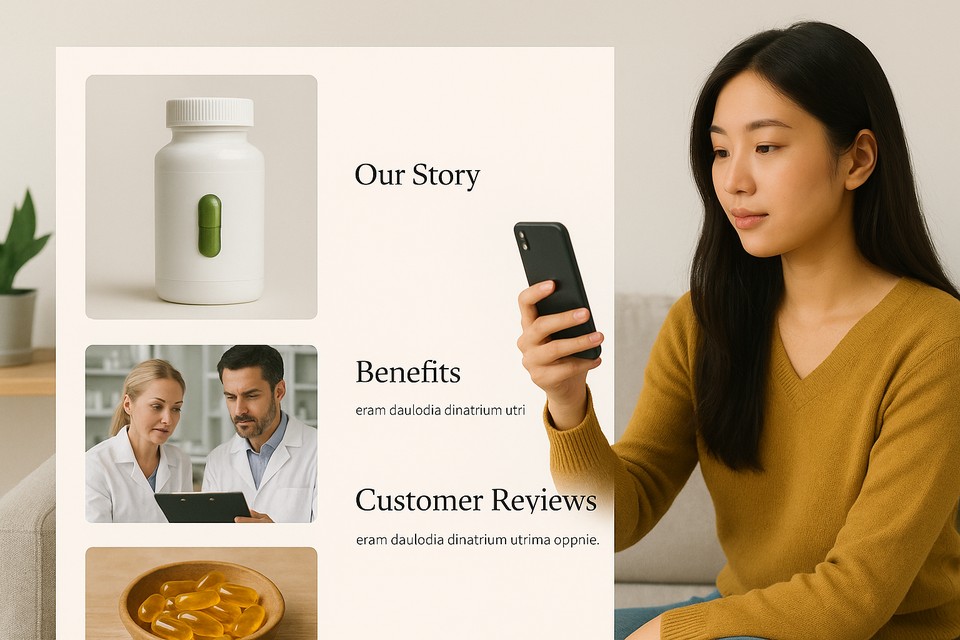 一頁式網站能與保健食品業口碑行銷高度契合,關鍵在於能以最短資訊距離,建立最完整信任敘事。保健食品屬於高資訊需求、低信任門檻品類,消費者在決策過程中,往往同時關注成分來源、功效驗證、與他人使用體驗。