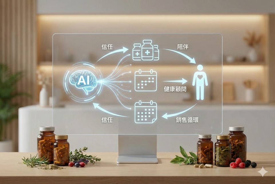 由於保健品價值建立依靠週期使用與身體感受累積,若品牌只追求轉單,便會在短視成效指標中失去競爭力。AI負責推薦與提醒,使其有機會成為使用者「健康顧問」,而品牌真正競爭場域,正是能否在AI與消費者間建立陪伴關係,讓每次使用經驗都自動回到銷售循環。