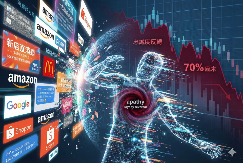 口碑行銷向來是最有說服力推廣方式,但在資訊高度飽和環境中,同時也是風險最高行銷手段。有七成消費者對品牌訊息產生麻木,甚至因過度宣傳而遠離品牌,顯示市場正進入「忠誠度反轉」關鍵階段。當品牌溝通失去清晰度、只剩頻率與聲量時,口碑不但無法放大信任,反而可能引爆負評