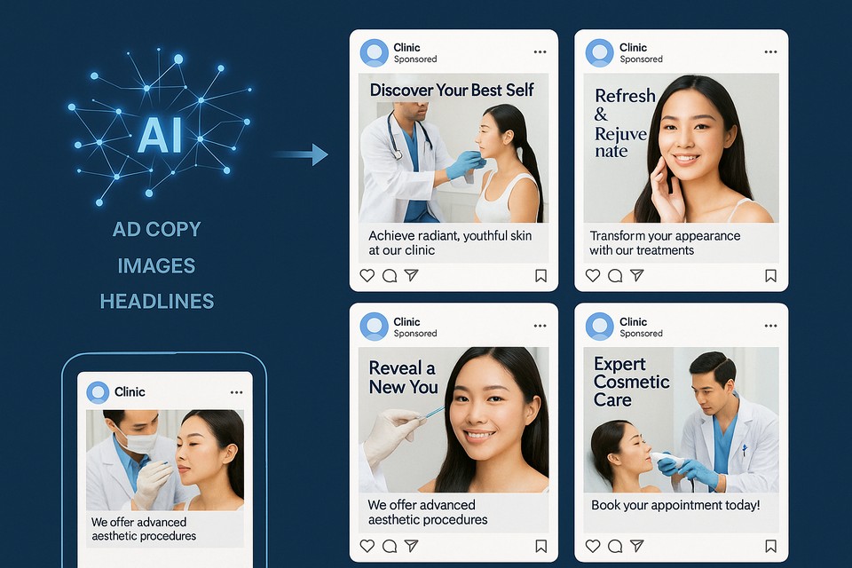 例如針對皮膚雷射療程,AI能針對不同年齡層與需求設計差異化廣告素材,並依據即時數據調整投放策略,讓廣告資源集中在最有效受眾,確保診所行銷投資報酬率最大化。